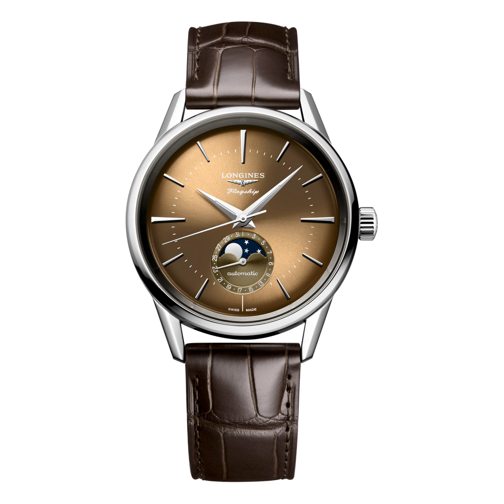 Die Eleganz und Schlichtheit der Flagship Heritage Modelle haben diese LONGINES Kollektion zu einem zeitlosen Klassiker gemacht. Diese Uhren vereinen technisches Know-how, Ästhetik und eine Hommage an die historischen Flagship Modelle. Der Name Flagship ist seit den späten 1950er Jahren ein Wahrzeichen der Marke und war eine der ersten Kollektionen von LONGINES. Das „Flaggschiff“ führt die Flagge des Oberbefehlshabers der Flotte. Das Emblem der Kollektion, eine handgemalte Karavelle mit Emaille auf einem Medaillon aus 18 Karat Gold, ist auf dem verschraubten Gehäuseboden zu sehen.