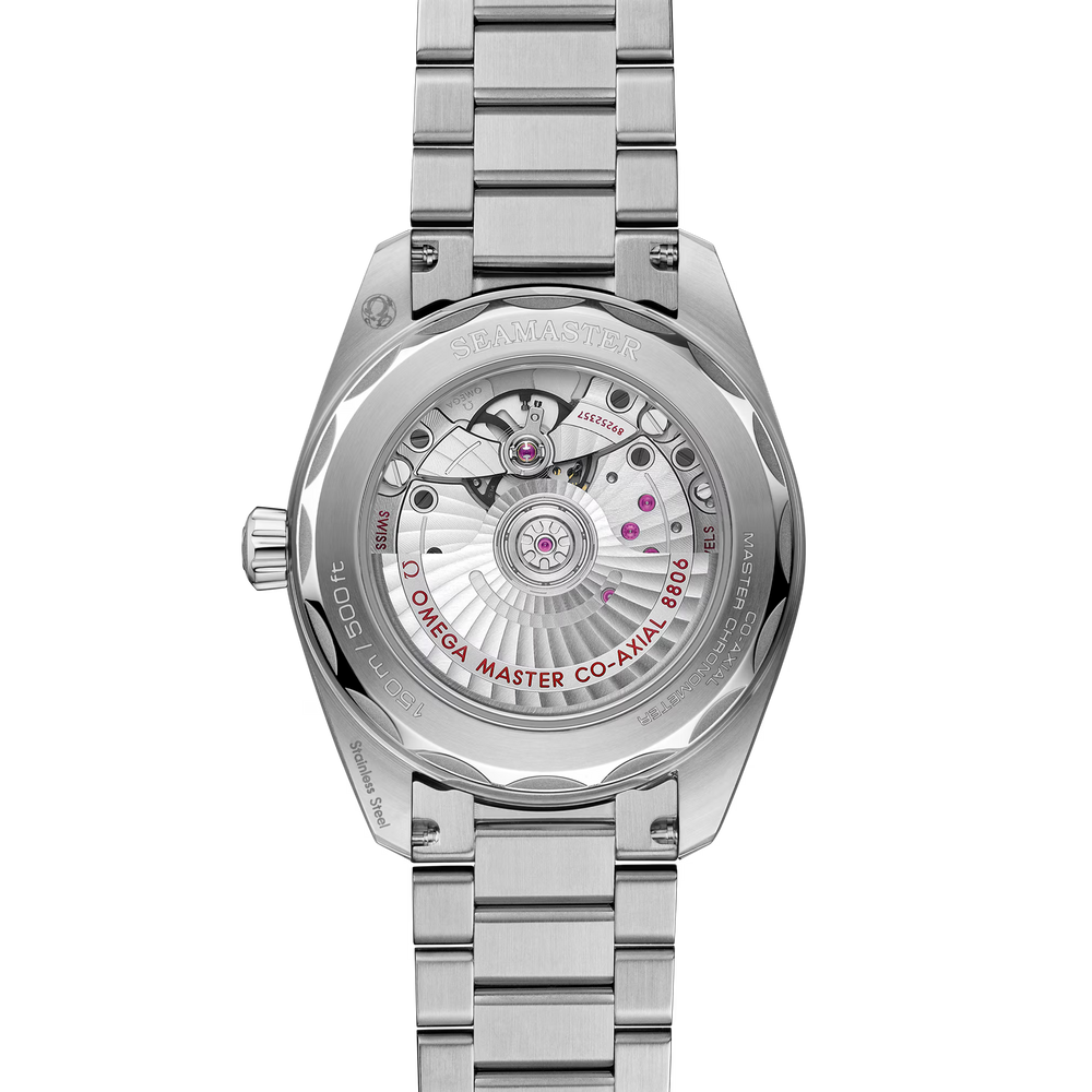 Auch setzt die Uhr das antimagnetische Erbe der Railmaster fort – dank des Co-Axial Master Chronometer Kalibers 8806. Das Uhrwerk ist bis zu 15.000 Gauß magnetresistent und kann durch das transparente Saphirglas auf dem Gehäuseboden bewundert werden.