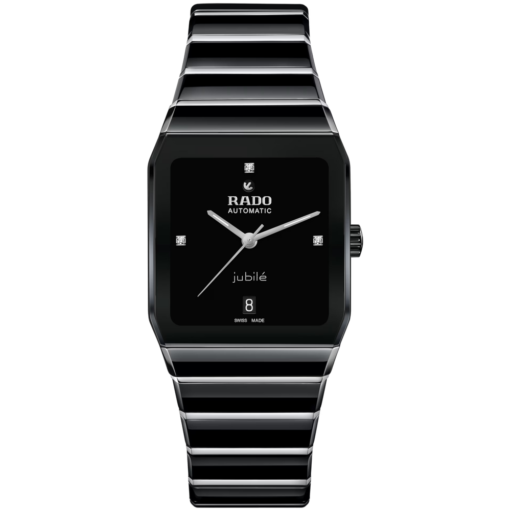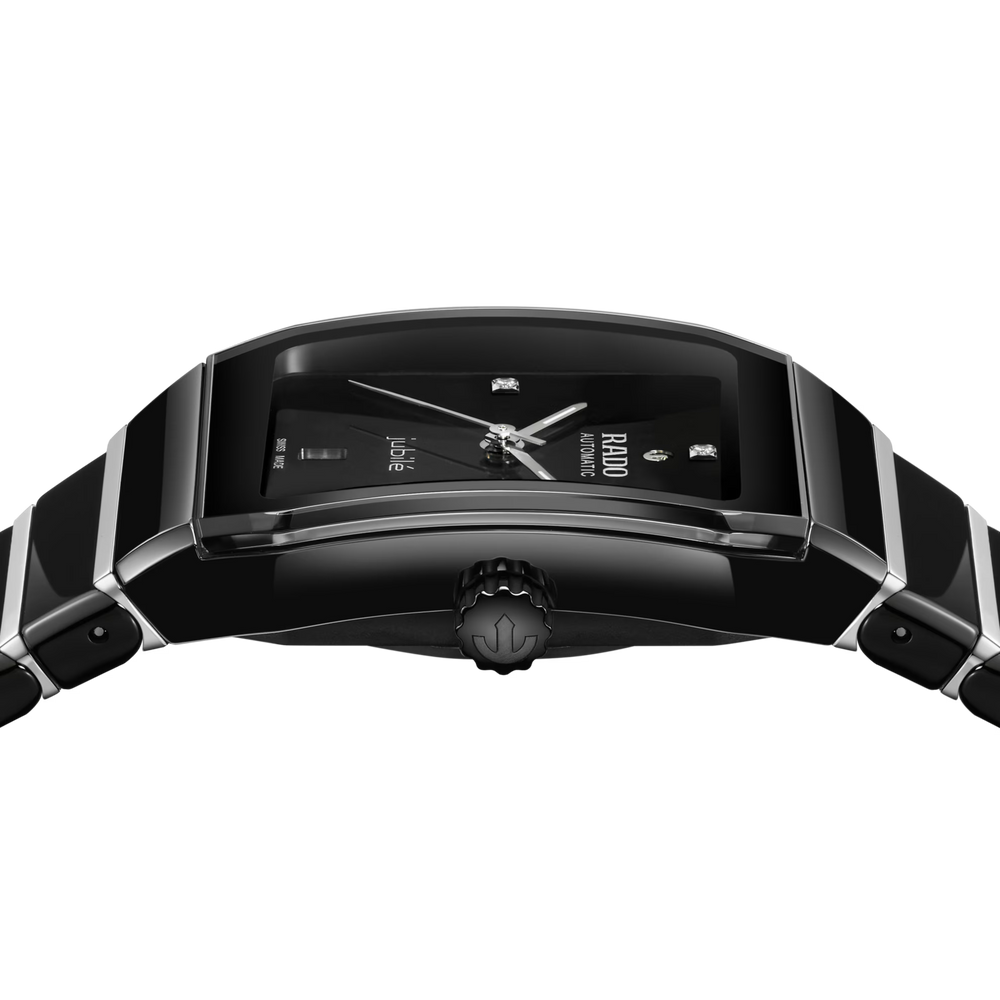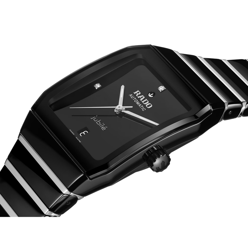 Seit ihrem Debüt im Jahr 1983 ist die Rado Anatom ein Symbol für bahnbrechendes Design und ultimativen Tragekomfort. Ihr charakteristisches Merkmal ist das zylindrische, metallisierte Saphirglas mit facettierten Kanten auf beiden Seiten, das nahtlos in ein Armband aus Hightech-Keramik übergeht und so eine glatte, durchgehende Form schafft, die Gehäuse und Armband zu einer geschlossenen Einheit verschmelzen lässt. Das aus polierter schwarzer Hightech-Keramik und polierten Edelstahl-Mittelgliedern gefertigte Armband wird durch eine Dreifachschliesse aus gebürstetem Edelstahl sorgfältig gesichert.