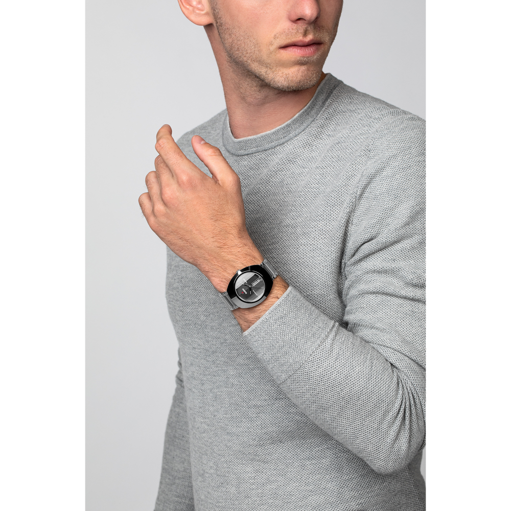 Die einzigartige DiaStar Original hat einen Durchmesser von 38 mm und ist bis zu einer Tiefe von 100 m wasserdicht. Eingerahmt von einer breiten Lünette aus hochglänzendem Ceramos™ mit geschliffenen Schrägen und Details über einem dazu passenden monochromen Gehäuse aus Edelstahl wird diese schöne Uhr mit einem facettierten Saphirglas mit parallelem Streifenmuster perfekt abgerundet. Zu den Merkmalen der Uhr gehören zudem ein dunkelgraues, in zwei Richtungen gebürstetes Zifferblatt, rhodiumfarbene Zeiger mit weißem Super-LumiNova® und eine Wochentags- und Datumsanzeige in der gleichen Farbe wie das Zifferblatt. Im Inneren bietet das Rado R764 Automatikwerk mit antimagnetischer Nivachron™ Spiralfeder eine Gangreserve von 80 Stunden. Das Armband ist aus poliertem und satiniertem Edelstahl gefertigt.