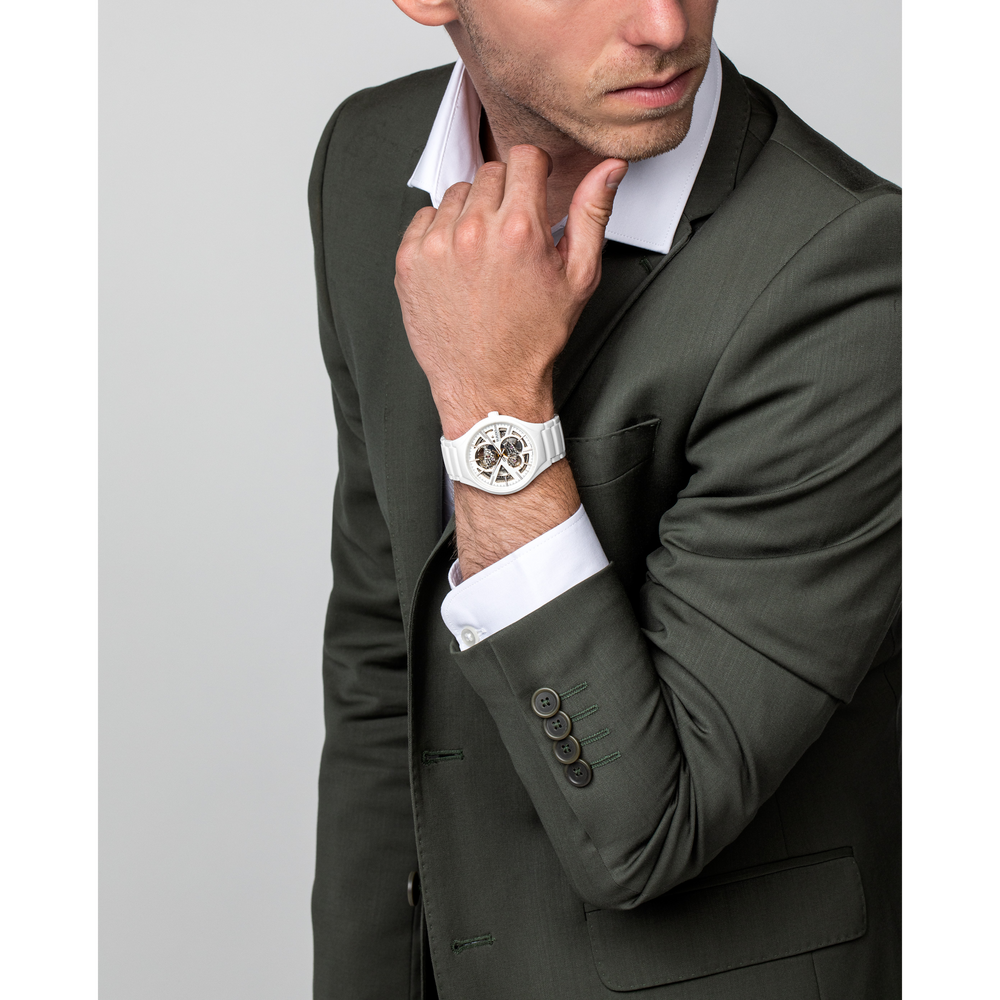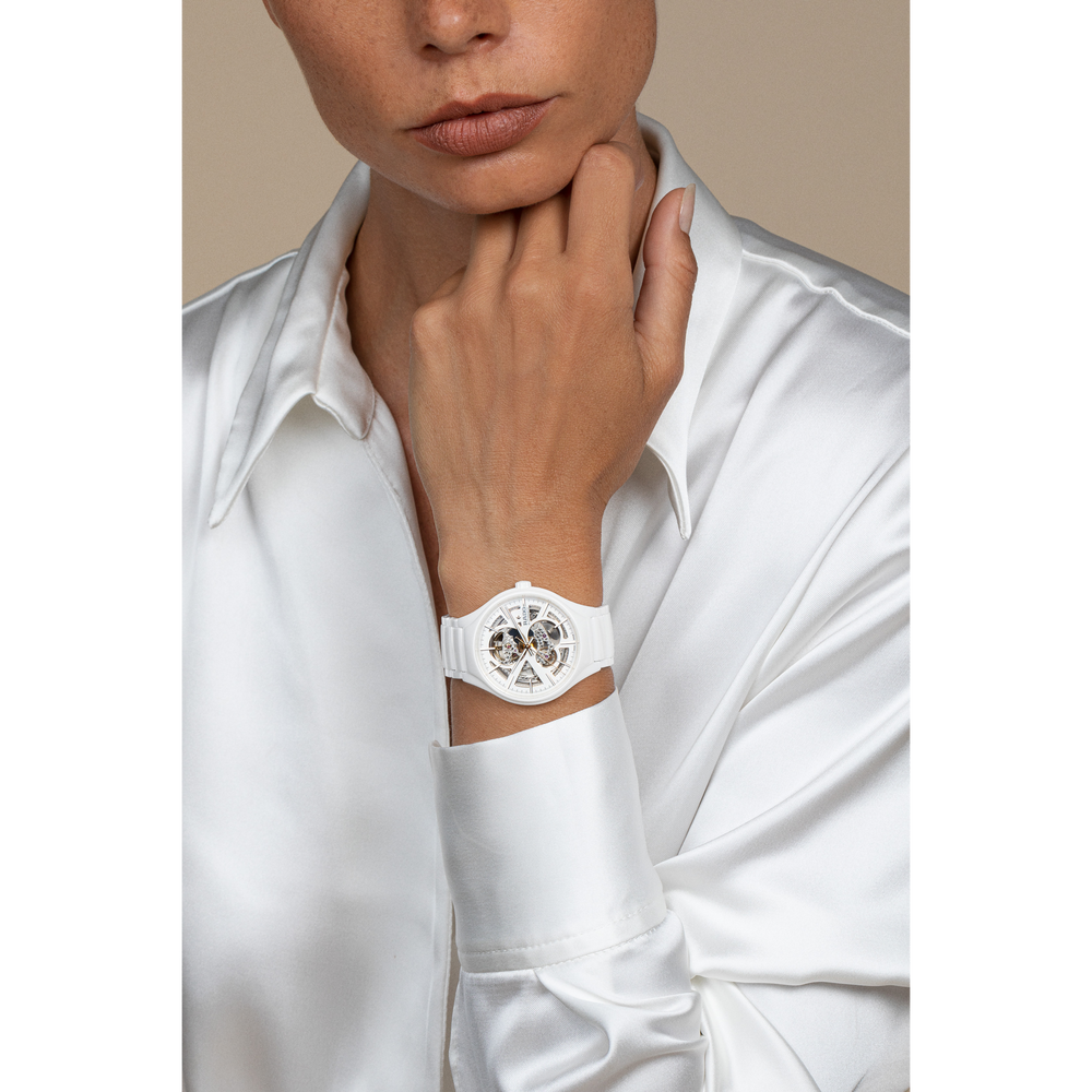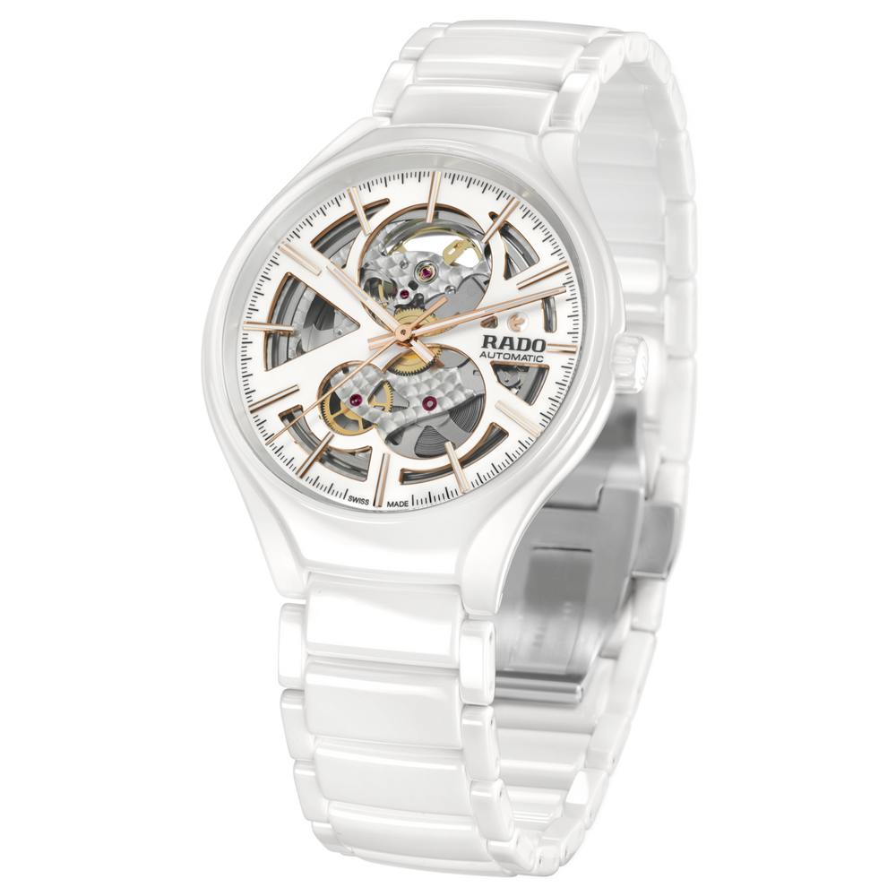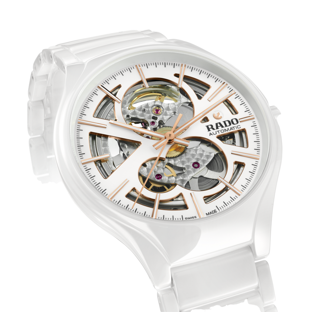 Wie der Name schon verrät, erlaubt das Zifferblatt der Rado True Open Heart Automatic einen Blick auf das ebenso elegante wie schöne Schweizer Automatikwerk im Inneren der Uhr. Die Open Heart Automatic ist bereits in einer Reihe von Farben erhältlich, die charakteristisch für Rado sind. Jetzt stellt sie der Schweizer Uhrenhersteller erstmals in einer neuen, reinweißen Form seines revolutionären Monobloc-Gehäuses aus polierter Hightech-Keramik vor.