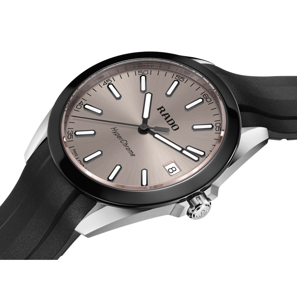 Auch das Herzstück der Uhr, das Rado Kaliber R292, sorgt für aussergewöhnliche Ganggenauigkeit und Zuverlässigkeit. Das mit 3 Steinen versehene Quarzwerk kombiniert die Technologien PreciDrive und HeavyDrive, die eine präzise Regulierung der einzelnen Impulse ermöglichen und eine Abweichung von maximal ±10 Sekunden pro Jahr gewährleisten. Ein diskretes Datumsfenster bei 3 Uhr fügt sich nahtlos in das ausgewogene Design des Zifferblatts ein.
