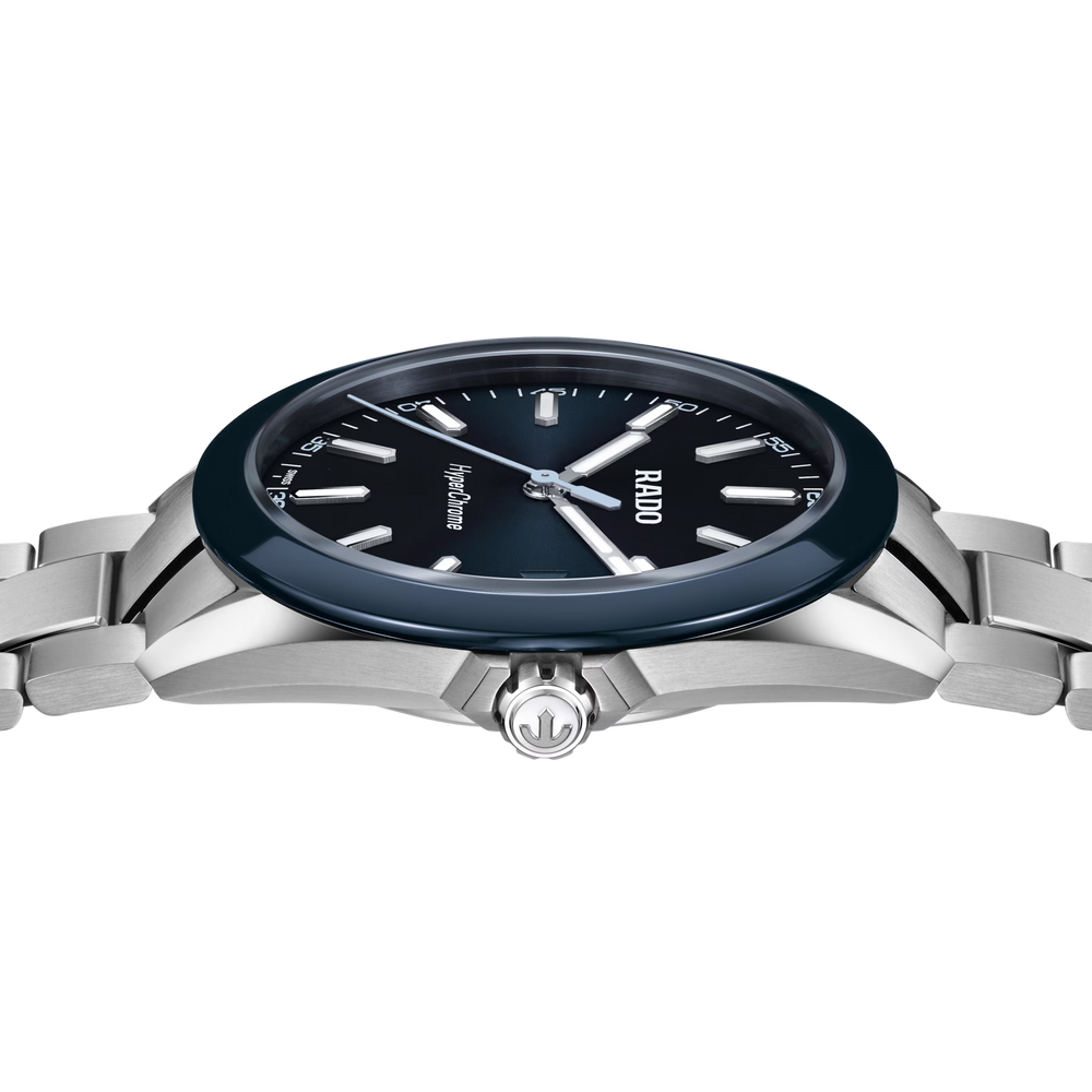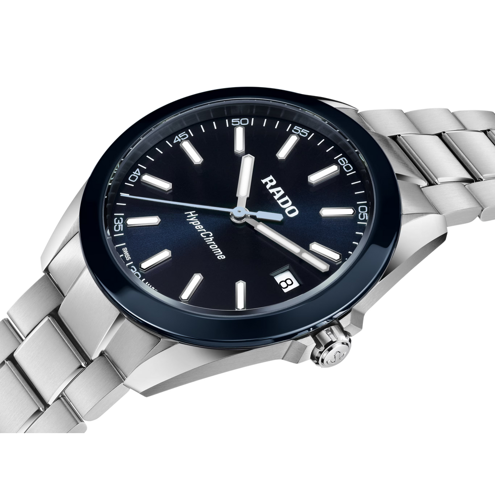 Auch das Herzstück der Uhr, das Rado Kaliber R292, sorgt für aussergewöhnliche Ganggenauigkeit und Zuverlässigkeit. Das mit 3 Steinen versehene Quarzwerk kombiniert die Technologien PreciDrive und HeavyDrive, die eine präzise Regulierung der einzelnen Impulse ermöglichen und eine Abweichung von maximal ±10 Sekunden pro Jahr gewährleisten. Ein diskretes Datumsfenster bei 3 Uhr fügt sich nahtlos in das ausgewogene Design des Zifferblatts ein.