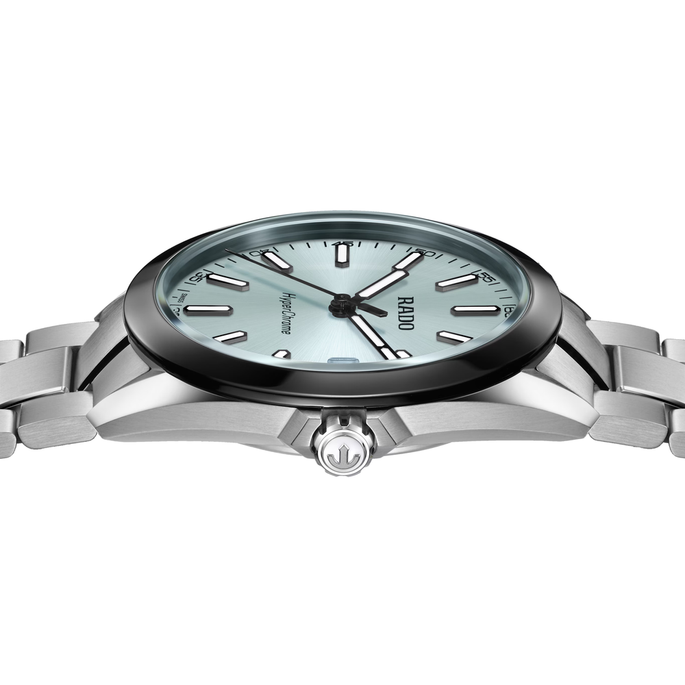 Auch das Herzstück der Uhr, das Rado Kaliber R292, sorgt für aussergewöhnliche Ganggenauigkeit und Zuverlässigkeit. Das mit 3 Steinen versehene Quarzwerk kombiniert die Technologien PreciDrive und HeavyDrive, die eine präzise Regulierung der einzelnen Impulse ermöglichen und eine Abweichung von maximal ±10 Sekunden pro Jahr gewährleisten. Ein diskretes Datumsfenster bei 3 Uhr fügt sich nahtlos in das ausgewogene Design des Zifferblatts ein.