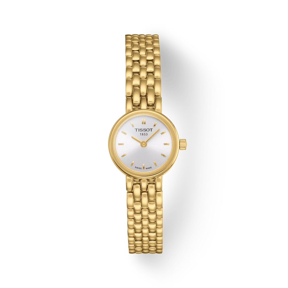 Die Tissot Lovely kleidet raffinierte Eleganz in zeitloses Design. Wird die Uhr locker am Handgelenk getragen, wirkt sie wie ein atemberaubendes Schmuckstück. Dieses Modell aus der Tissot Lovely Kollektion hat ein 316L - Edelstahlgehäuse mit gelbgoldfarbener PVD-Beschichtung und ein makelloses, schlichtes Zifferblatt in silberfarben mit Indizes sowie ein massives 316L - Edelstahlarmband mit Butterfly-Faltschließe und Drückern mit gelbgoldfarbener PVD-Beschichtung. Alle Tissot Lovely Uhren verfügen über ein kratzfestes Saphirglas und werden von einem präzisen Swiss Made Quarzwerk angetrieben, damit Sie Tag und Nacht mit der Zeit Schritt halten können.
