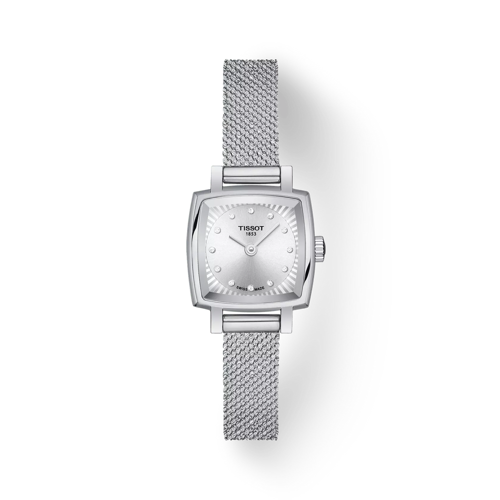 Die Tissot Lovely kleidet raffinierte Eleganz in zeitloses Design. Wird die Uhr locker am Handgelenk getragen, wirkt sie wie ein atemberaubendes Schmuckstück.Diese Ausführung aus der Tissot Lovely Kollektion besitzt ein viereckiges Gehäuse mit darüber hinausragendem, abgeschrägtem und kratzfestem Saphirglas. Das Modell verfügt über ein 316L-Edelstahlgehäuse und ein makelloses, schlichtes Zifferblatt in Silber mit 12 Diamanten. Das schmale 316L-Edelstahlarmband besitzt eine Schmuckschließe.Alle Tissot Lovely Uhren werden von einem präzisen Swiss Made Quarzwerk angetrieben, damit Sie Tag und Nacht mit der Zeit Schritt halten können.