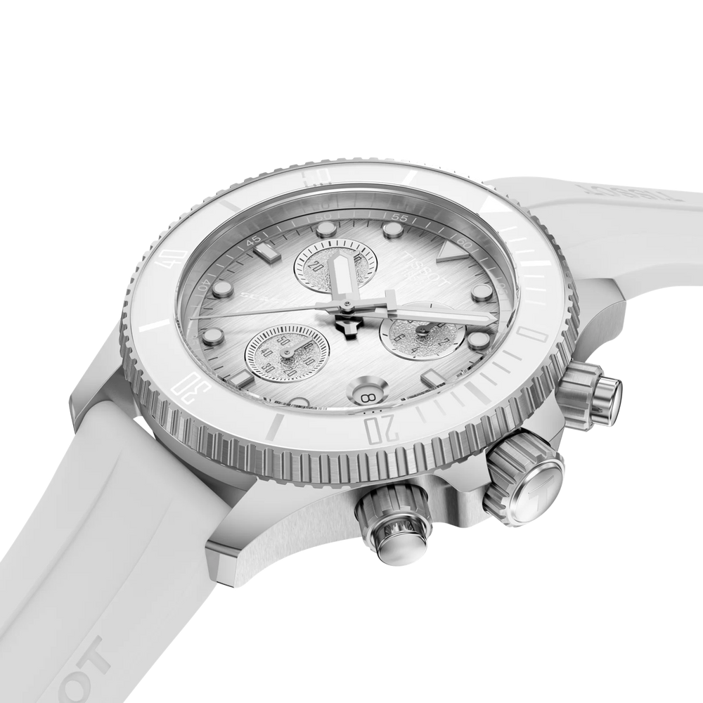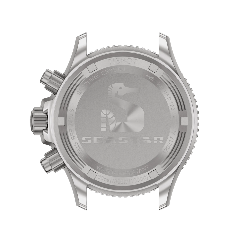 Funktionen: EOL (Anzeige des Endes der Batterielebensdauer), 30 Minuten- und 1/10 Sekunden-Zähler, Zentraler 60 Sekunden-Chronographenzeiger, ADD und SPLIT Funktionen