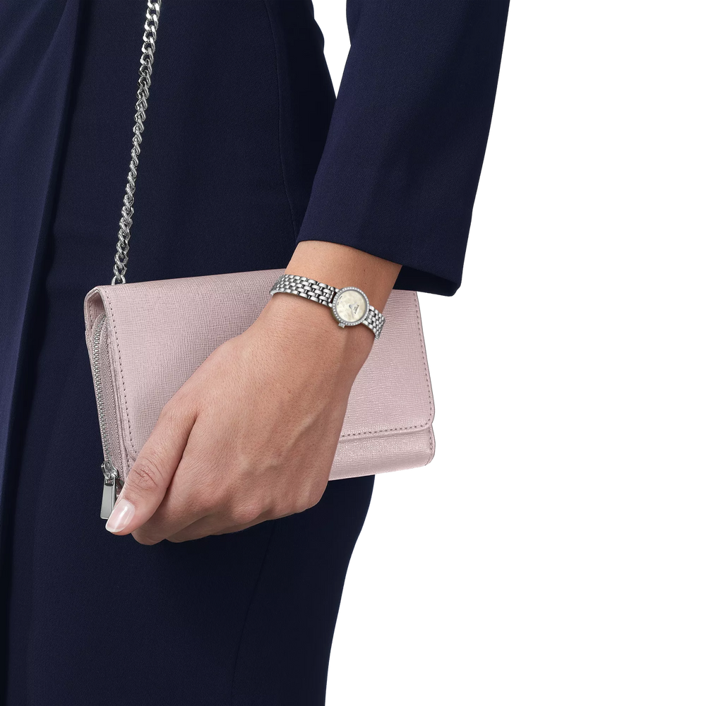 Die Tissot Lovely kleidet raffinierte Eleganz in zeitloses Design. Wird die Uhr locker am Handgelenk getragen, wirkt sie wie ein atemberaubendes Schmuckstück.