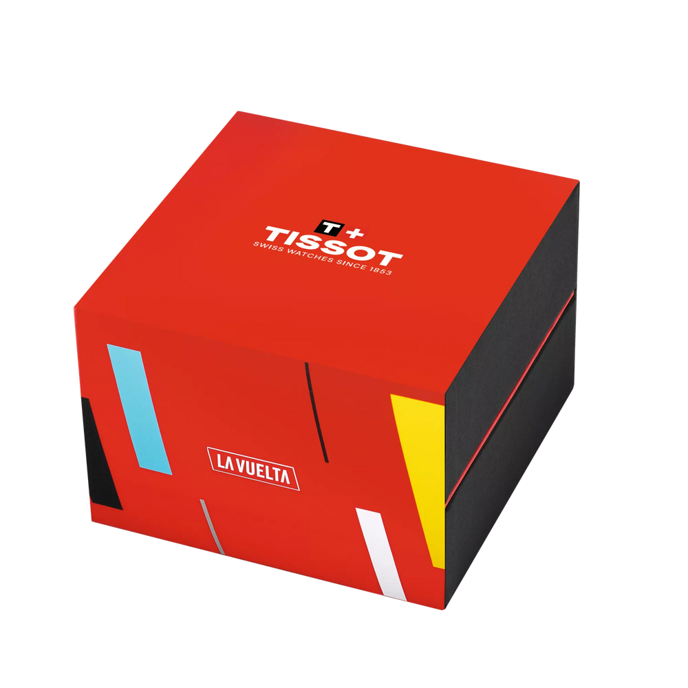 Im Herzen der Tissot PR 100 Vuelta schlägt das zuverlässige G10.212 Quarz-Chronographen-Uhrwerk und sorgt für Präzision und Robustheit. Dank Super-LumiNova®-Leuchtmassebeschichtung auf den nadelförmigen Zeigern ist beste Ablesbarkeit auch bei schlechten Lichtverhältnissen garantiert. Auf dem Gehäuseboden dieses Modells prangt die Gravur des offiziellen Vuelta Logos. Die Uhr ist wasserdicht bis zu einem Druck von 10 bar (100 m).